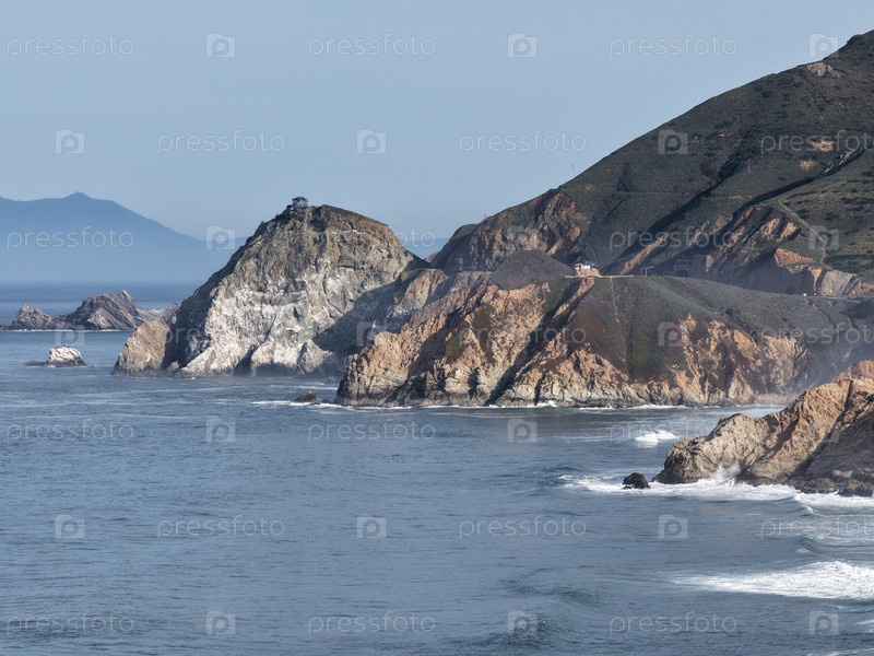 Драматическая тихоокеанская береговая линия с скалами, песчаным пляжем и океанскими волнами вдоль Калифорнийского побережья
