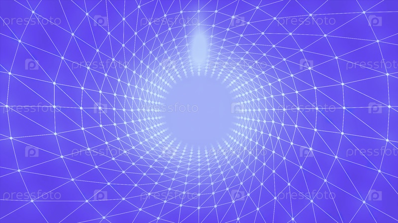 Абстрактный голубой тоннель с полосами вещей, создающий треугольные силуэты. Движение. Медленное движение внутри синего коридора с белым светом