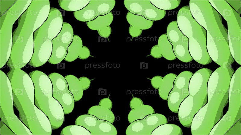 Сюрреалистический абстрактный фон с летающими симметричными фрактальными формами. Дизайн. Движущиеся пузыри и круги, образующие звезду