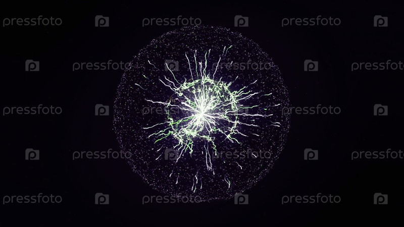Абстрактная концепция электрической энергии.Анимация.Красивая абстрактная молния и яркий свет в энергетическом шаре с молниеносом на черном фоне