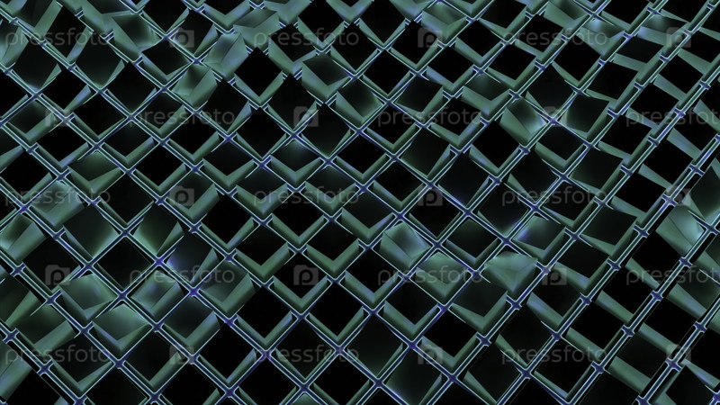 Виртуальная сетка с эффектом водяной волны. Действие. Квадратная сетка движется в волнах при блеске воды. Абстрактный бассейн из квадратных сеток с двигающимися волнами на черном фоне