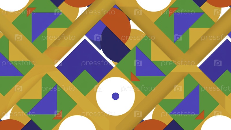 Яркая картина геометрических форм. Дизайн. Квадратные треугольники и круги в абстракции, меняющие цвета