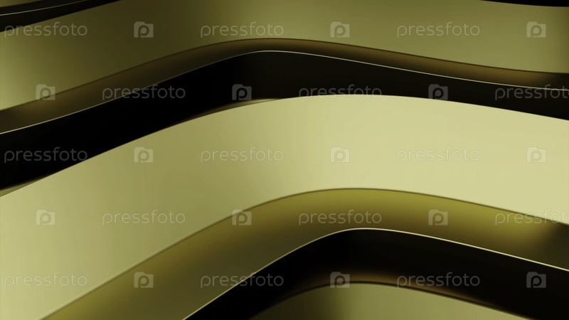 Абстрактные широкие золотые линии, движущиеся и создающие эффект бесконечного вращения. Дизайн. Изолированные изгибшие полосы на черном фоне