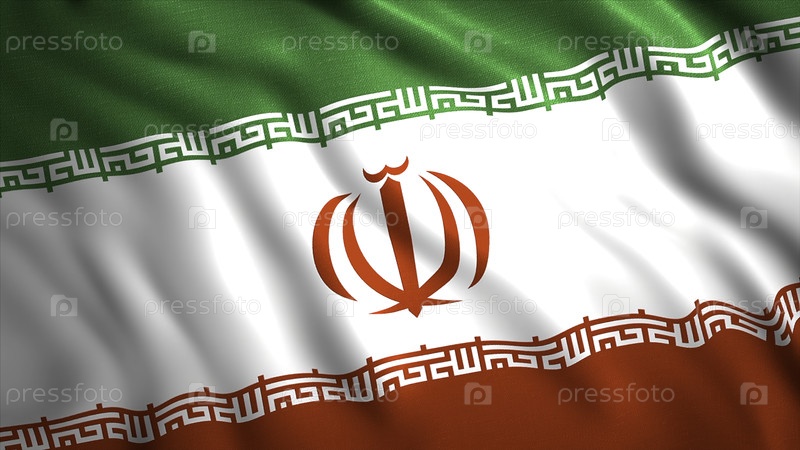 Реалистичное замедленное движение, размахивающее флагом Ирана.Движение.Высоко подробная текстура ткани национального трехцветного флага