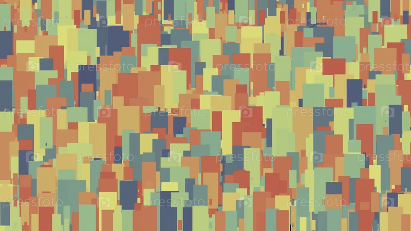 Абстрактные красочные прямоугольные узоры с случайным и волновым движением. Анимация. Счастливый веселый праздничный фон в сладком желтом цвете конфеты и голубых цветах, бесшовная петля