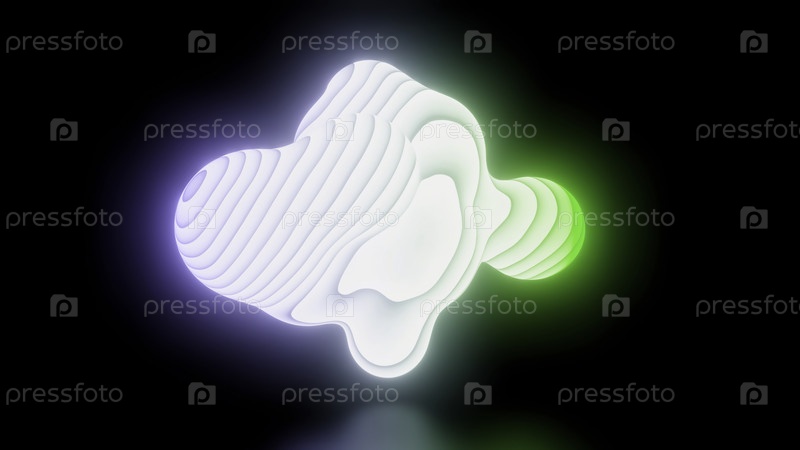 Абстрактная светящаяся фигура с неоном, постоянно меняющая форму, плавный цикл. Дизайн. Сложная 3D-форма вращается изолированно на черном фоне