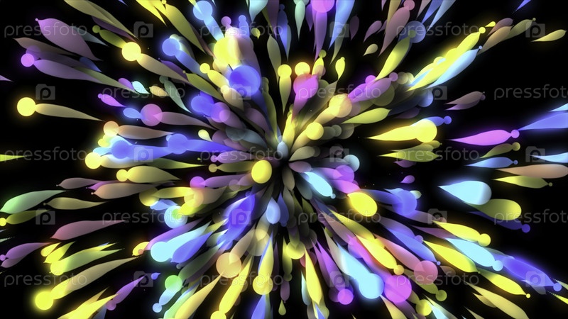 Поток красочных 3D линий и шаров. Движение. Красивый поток цветных воздушных шариков. Абстрактный праздничный фейерверк, сделанный из баллонов, исчезающих в точке
