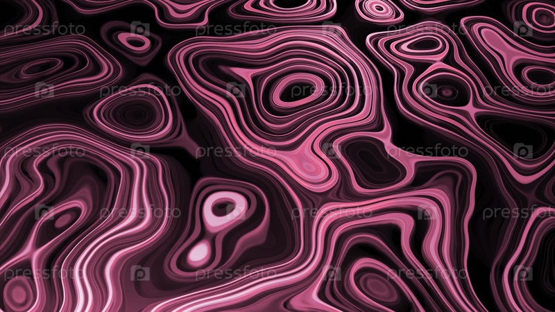 Яркий рисунок с овальными линиями в движении. Дизайн. 3D-рисунок двигающейся жидкости с топографическими линиями. Кибержидкость с топографическим рисунком