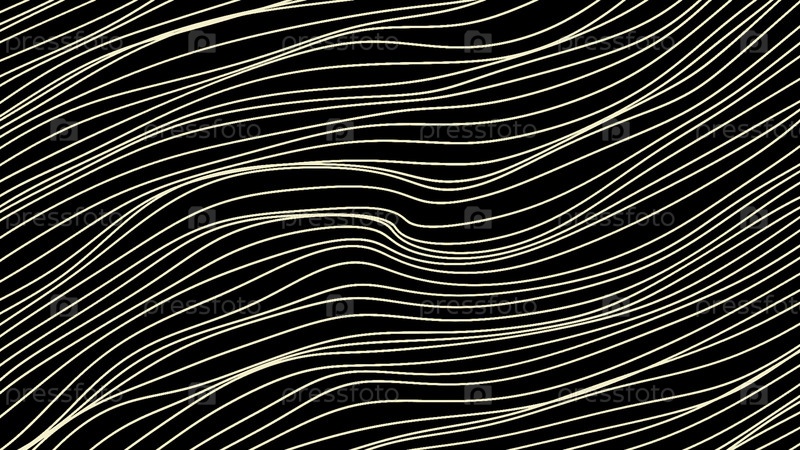 Линии медленно перемещаются волнами на черном фоне.Движение.Тонкие линии движутся в волнах.Фона потока изогнутых волнистых нитей