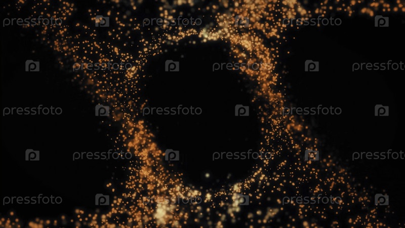 Абстрактные цветные частицы, движущиеся по кругу на черном фоне.Абстракция живых с блестящими лакомствами, перемещающимися вокруг открывающих прозрачное пространство на черном фоне