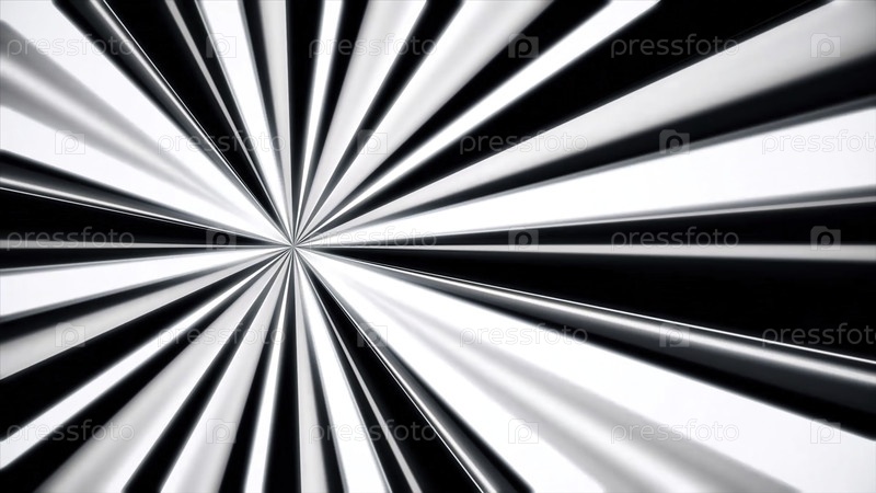 Стрелковый движущийся фон черно-белых полос, выходящих из одной точки как прожектор