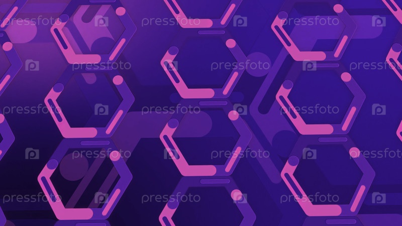 Синий и розовый фон шестиугольников в вращающемся движении, бесшовная петля. Движение. Красивое крутящееся поле красочных шестиугольных силуэтов