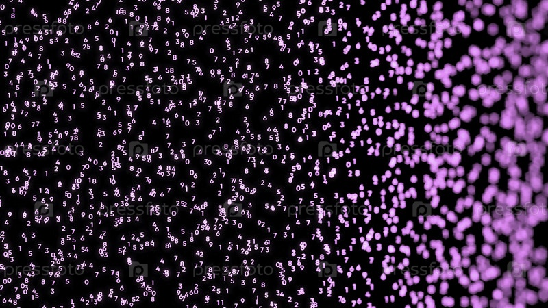 Цифровые хаотические числа на черном фоне. Анимация. Широкое разнообразие ярких чисел от 0 до 9, изменяющихся случайным образом в цифровом темном пространстве