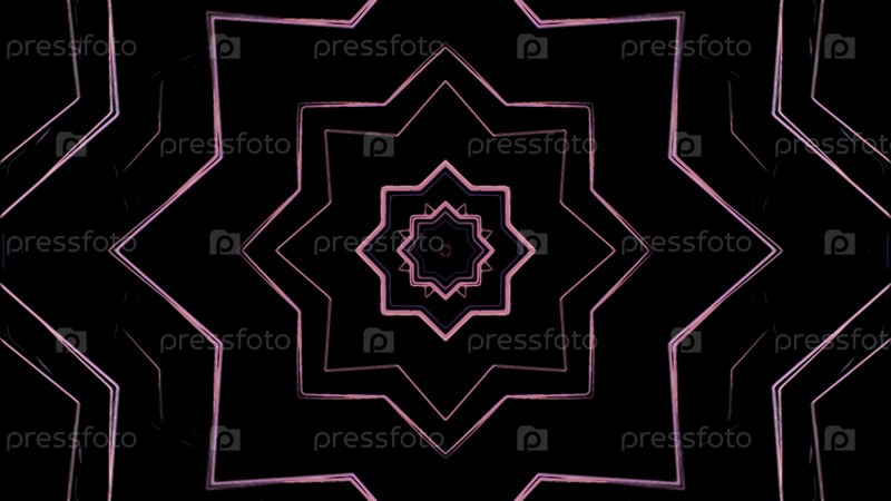 Абстрактная анимация звезды Давида на черном фоне. Дизайн. Распространение звезд с калейдоскопическим эффектом