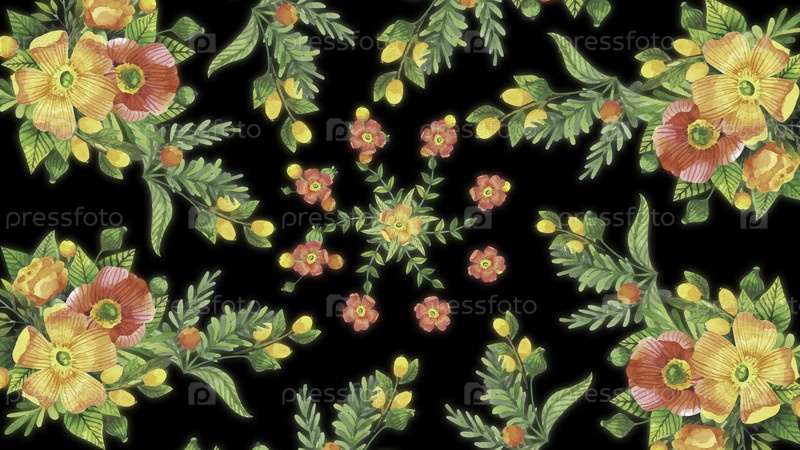 Абстрактная анимация растений на черном фоне. окрашенные цветы на черном фоне