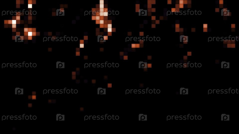 Серый и красный фон. Движение. Яркие квадраты в пикселях на черном фоне, движущиеся в разных направлениях в 3D-формате