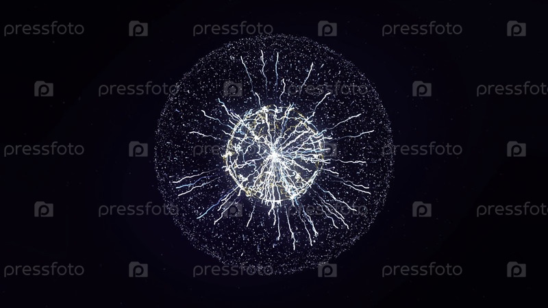 Красочная абстрактная анимация энергии плазменной шариковой лампы и красивых молниеносных ресниц на черном фоне. Анимация. Концепция питания, электричества, науки и физики
