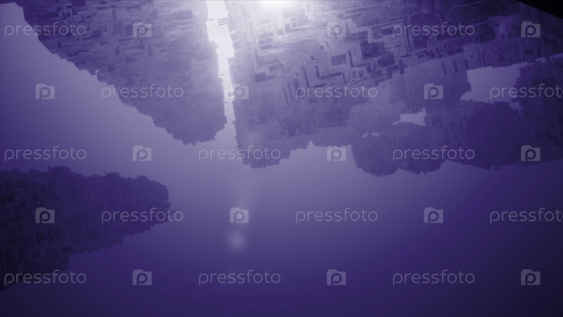 Вид с морского дна, когда солнце светит сквозь толщину воды. Движение. Каменные образования под водой