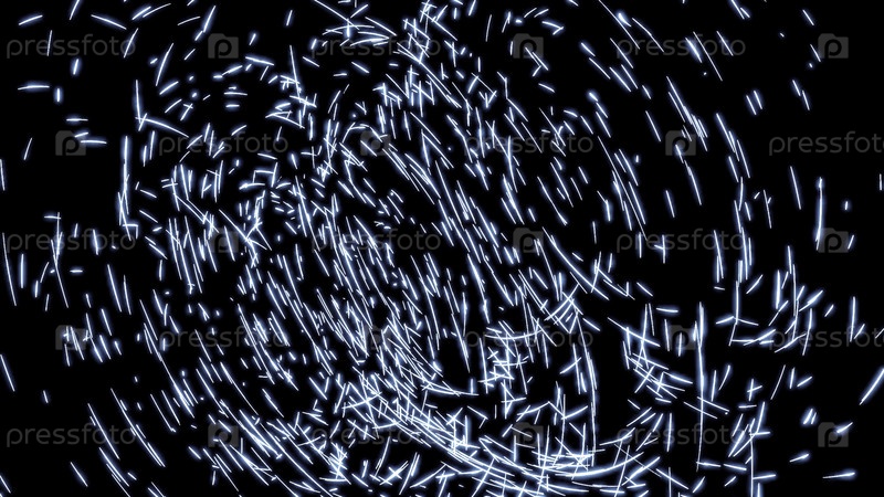 Летающие частицы на черном фоне. Дизайн. Облако небольших цветных пылевых частиц, движущихся в кругу
