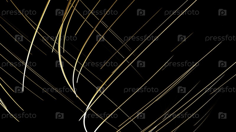 Абстрактные медленно движущиеся узкие световые полосы, изолированные на черном фоне. Движение. Переплетенные изогнутые красочные линии
