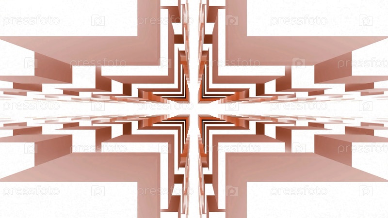 Движение в поперечном геометрическом туннеле.Движение.Геометрическая анимация с движением между кубическими столбами.Туннель с пересечением креста из кубических стен