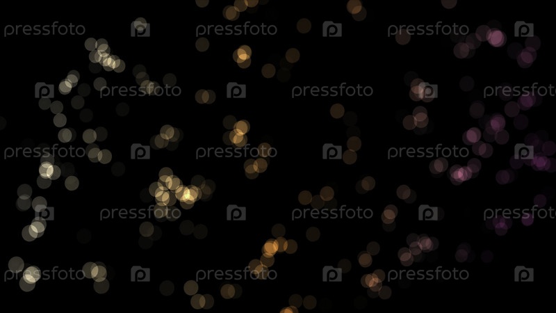 Абстрактный сверкающий боке на черном фоне.Анимация.Многоцветные ленточки в фокусе, движущиеся как живые частицы на изолированном черном фоне