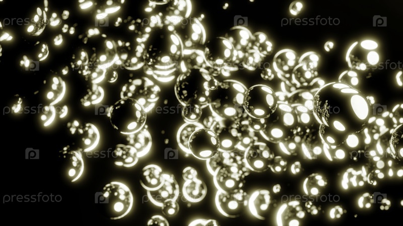 Черный фон. Дизайн. Яркие золотые и фиолетовые пузыри брызгут в разных направлениях под большим давлением в анимации. Высокое качество 4k кадров
