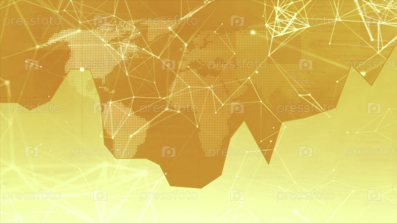 Оранжевый и фиолетовый фон. Дизайн.Светлые круги позади расширяются, а сетки молекул летают в мультфильме-анимации. Высококачественные кадры 4k