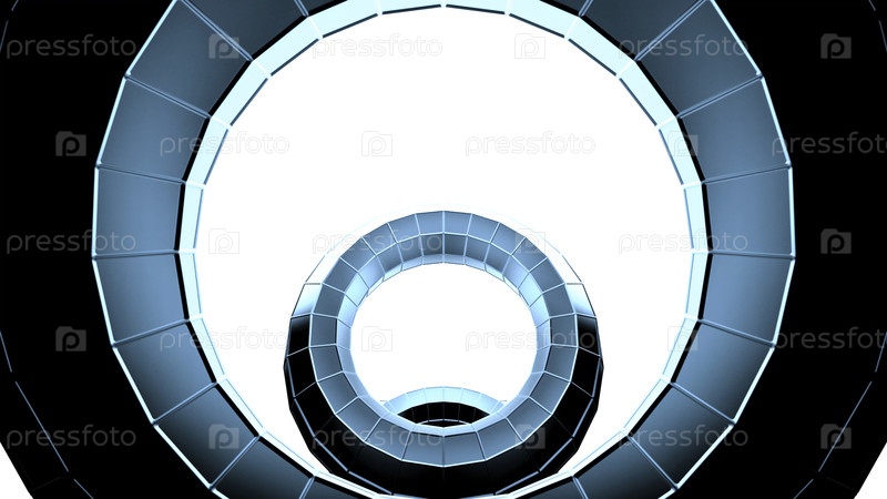 Футуристический технический тоннель. Дизайн. 3D-туннель с элементами футуристического космического корабля. Движущийся туннель с кольцами и космическими деталями