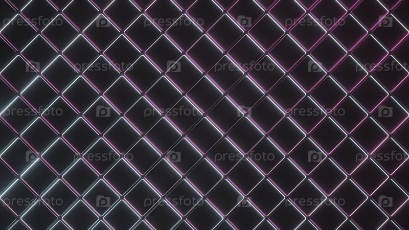 Абстрактная металлическая решетка с эффектом градиента.Дизайн.Металлический забор в форме ромба синий и розовый