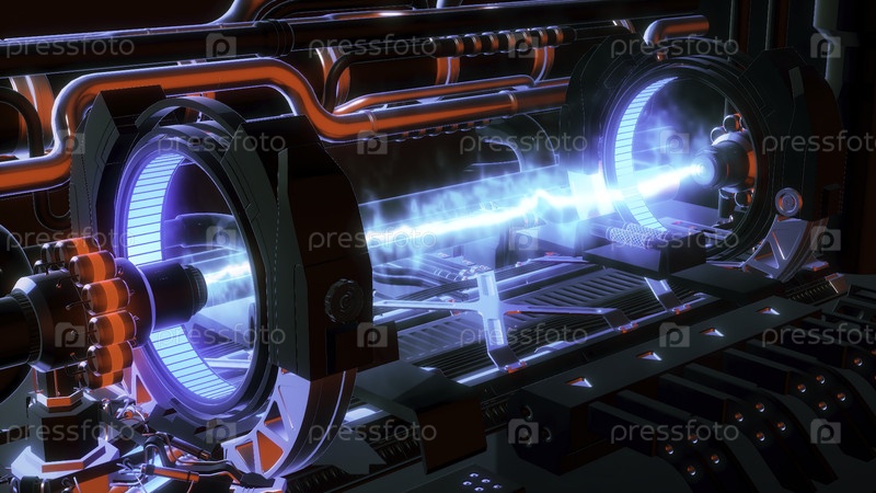 Машина светящегося лазерного луча. Движение. 3D-двигатель с лазерным лучом. Электромотор космического корабля с лазером