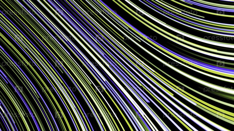 Абстрактный фон движущихся многоцветных неоновых линий на черном фоне. анимация. изогнутая цветная линия, быстро перемещающаяся в потоке