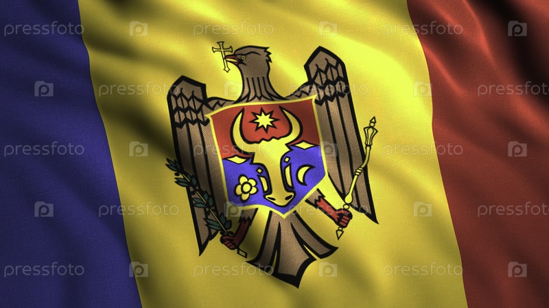 Анимация для национального праздника с флагом страны. Движение. Красивый флаг страны развевается по холсту. 3D-фон с размахивающим флагом Молдовы