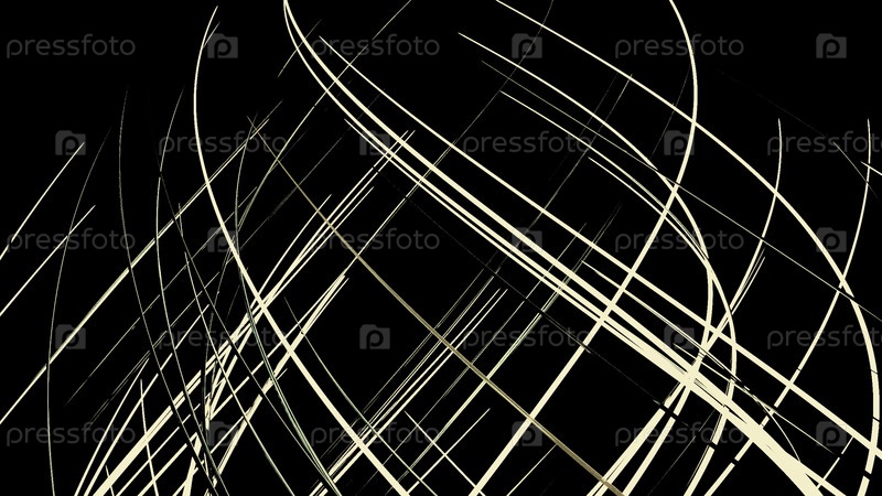 Абстрактные творческие линейные волны, волнистый динамический рисунок. Дизайн. Кривые энергетические узкие полосы, движущиеся вниз изолированными на черном фоне, красивая спираль