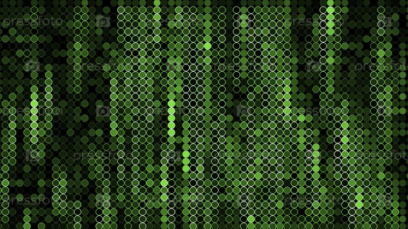 Зеленый мигающий бегущий ряд мерцающих пикселей.Движение.Концепция программного кода