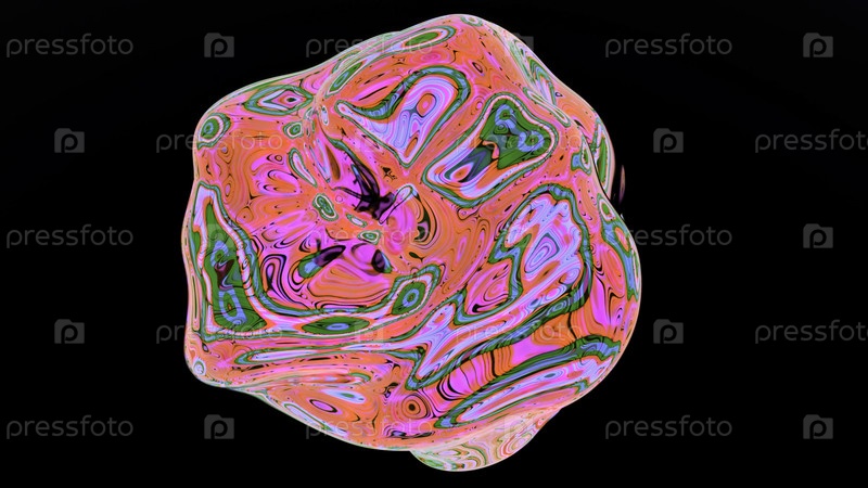 Черный фон.Дизайн.Неон розовое пятно, вращающееся вокруг себя в абстракции
