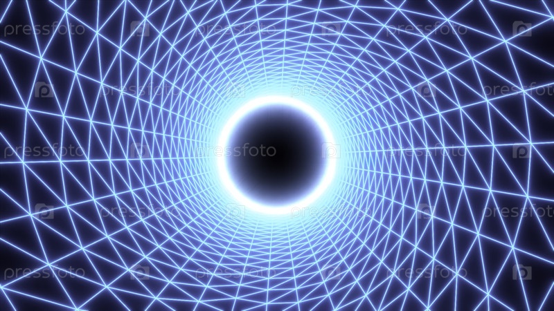 Синий и розовый фон.Движение.Яркий туннель, сделанный из сетки на черном фоне, который глубоко проникает в 3D-формат