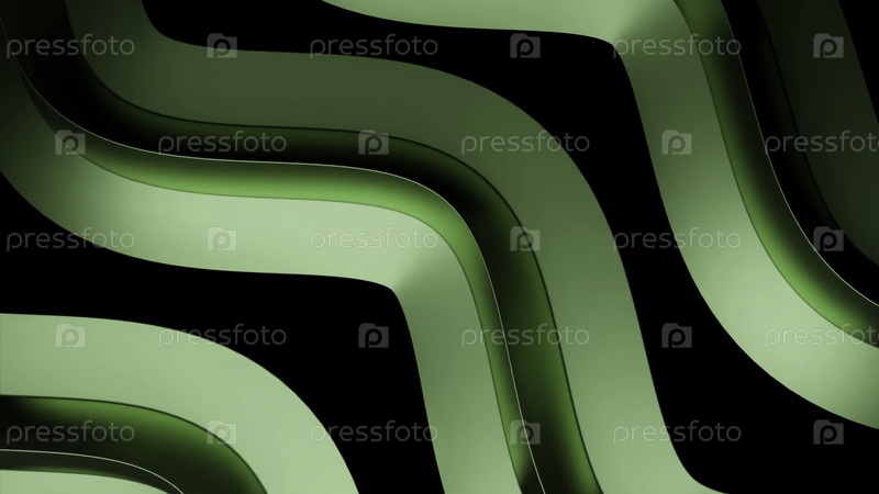 Яркие геометрические объемные волнистые линии, которые вращаются в 3D-формате на черном фоне