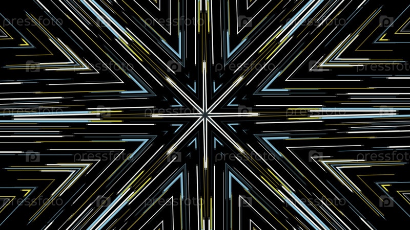 Гипнотический абстрактный калейдоскоп с движущимися неоновыми рядами линий, меняющих цвет.Анимация.Живой абстрактный красочный шаблон калейдоскопа