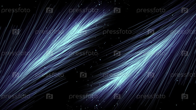 Красивые потоки энергетических линий на черном фоне. Движение. Потоки светящихся линий движутся параллельно друг другу. Прекрасные и нежные потоки из линий