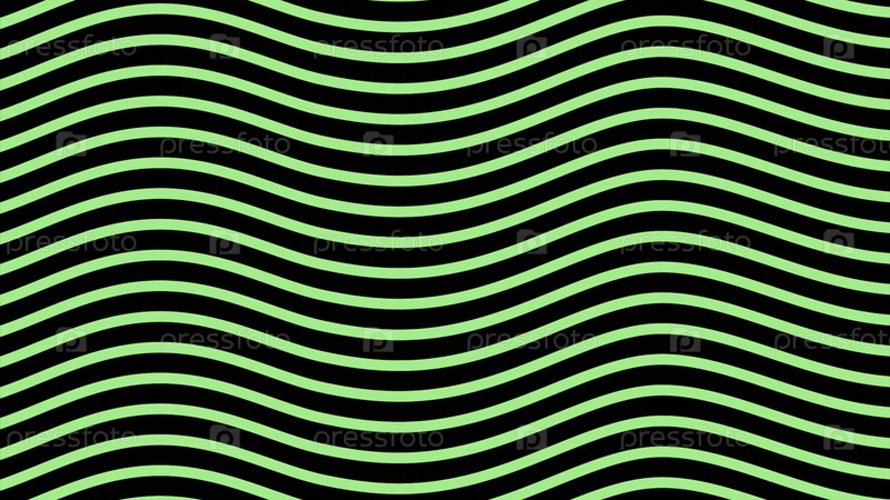 Полосатый фон с искаженным изгибом. Дизайн. Яркий фон со полосами кривые с визуальной иллюзией. Цветные полосы с волнистой кривизной на черном фоне