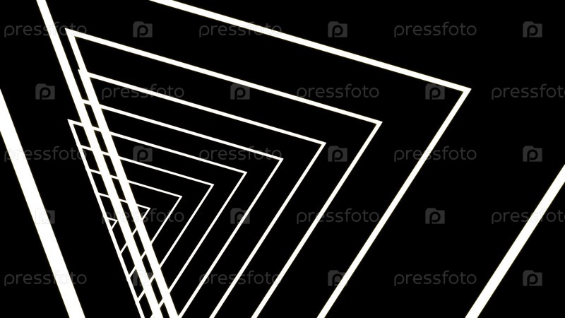 Анимация 3D-тунеля белых треугольных силуэтов, следующих одна за другой. Дизайн. Неоновые светящиеся геометрические формы в петлевом движении