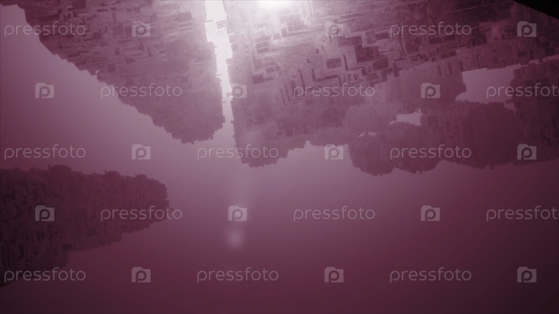 Розовый и синий фон.Движение.Большая глубина исходящей воды и огромные камни, которые выделяются в анимации мультфильмов.Высокое качество 4k кадров