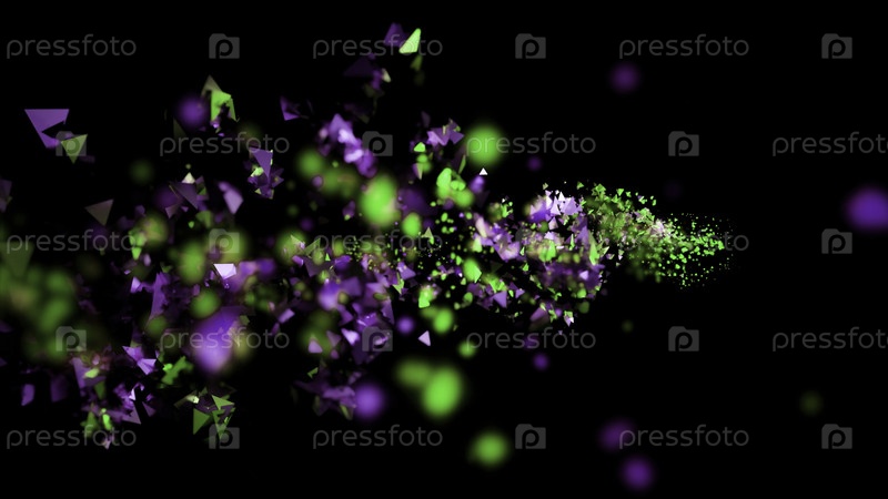 Концепция празднования, летающие красочные конфетти. Дизайн. Крошечные яркие частицы облака, летящие на черном фоне