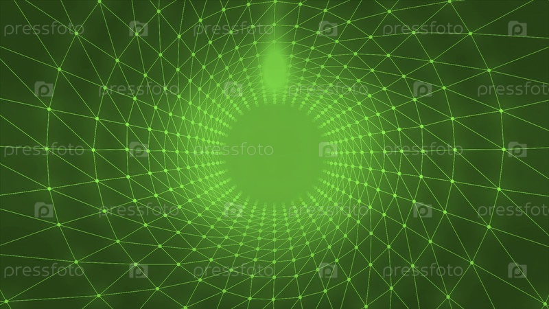 Круглый коридор с виртуальной сеткой.Движение.Централизованный тоннель с круговой сетью в виртуальном пространстве.Гипнотический туннель с неоном в матрице