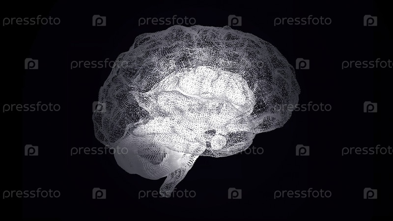 Абстракция структуры человеческого мозга на черном фоне. футуристические научные и технические соединения головного мозга в рентгеновском снимке. переплетение связей в головном мозге при вращающемся движении. концепция рентгеновской картины