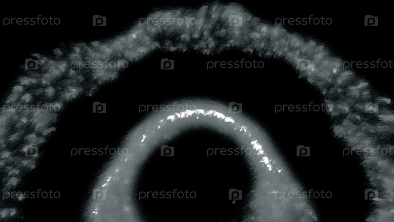 Темный фон с движущейся 3D-анимацией.Движение.Белые круги, сделанные из пузырей в анимации, которые трясутся в разных направлениях