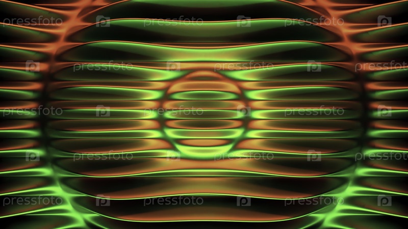 Вибрирующие и красочные волновые узоры создаются как абстрактные произведения искусства в оттенках зеленого и красного