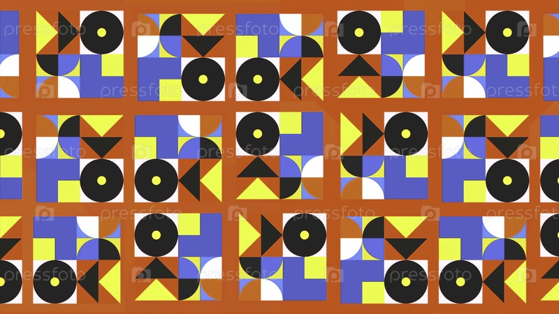 Цветный фон с движущимися геометрическими формами в стиле калейдоскопа. Движение. Яркий красочный фон с геометрическими узорами в ретро-стиле. Ретро-стиль ярких рисунков 80-х годов
