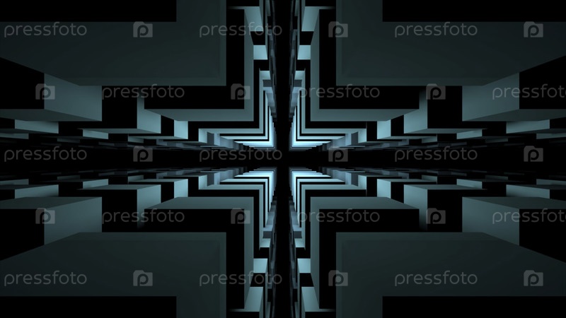 Летать через фрактальные цветные блоки, как в строительной игре.Дизайн.Бесконечный туннель летящих кубических форм